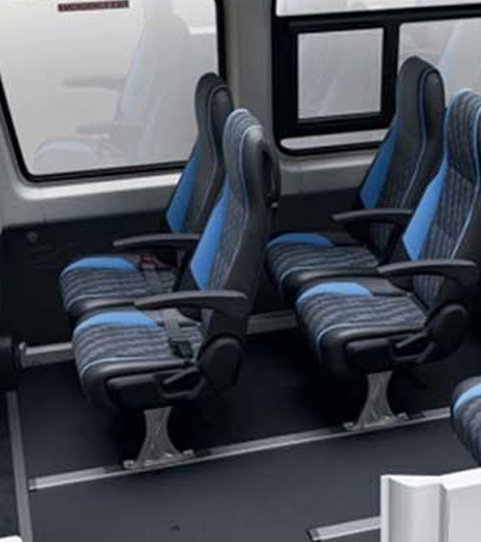 - Modern Interiors: Features a contemporary, stylish cabin with premium upholstery, wide aisles for effortless movement, and thoughtful design details that enhance passenger comfort and convenience.
